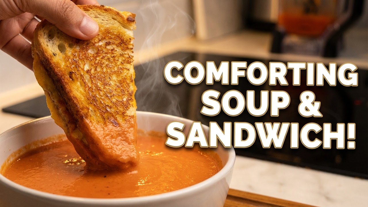 Nothing feels better on a chilly day than golden grilled cheese dipped in creamy tomato soup. When winter evenings call for something warm and comforting, I always go back to this timeless combo — a crispy golden grilled cheese sandwich paired with a silky, creamy tomato soup. It’s the kind of meal that makes you feel cozy, happy, and satisfied without taking too much time in the kitchen. The soup is made with roasted tomatoes, garlic, and a handful of cashews for natural creaminess (no heavy cream needed!). A touch of ketchup or honey balances the flavors beautifully. Pair that with a simple cheddar-stuffed grilled cheese, toasted in olive oil until perfectly golden, and you’ve got a hug in a bowl… and on a plate. ❤️ Perfect for cold days, quick dinners, or even a cozy weekend lunch. Try it once, and this might become your go-to comfort meal.